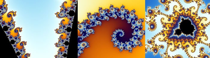 It gets even better still! If one zooms in on this image, the details just keep coming and they never repeat! As with the other fractals same kind of shapes return again and again, but never in the exact form. The beauty of it is breathtaking! Here are some examples of zoomed in parts: