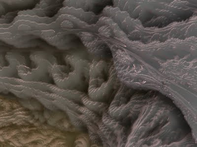 Wow, this is great! You just navigate to an interesting area, you sit back and the program start detailing, beautiful details... Be sure not to move the mouse because you're still in navigation mode (a bit confusing, getting used to?) When you do, some of the details are lost, but not nearly all, and it continues from a higher level. I can't help asking, will it continue detailing forever if I don't interfere? After some time smooth areas are substituted with new shapes and texture, but there are also some color banding (shades of gray) in certain areas and also some flat relatively uninteresting areas that seems to lay themselves on top of previous details. Will these go away in the end replacing details with higher resolution ones? And what is the difference between the detail created with voxel building and those I get from just waiting in raytrace mode? I suppose a manual does not exist yet, but maybe later?