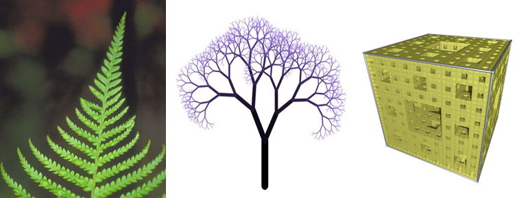 Ten years or so ago I wrote a paper for school about Fractals. These constitute a large variety of objects but what they all have in common is that they have several levels of self similarity. Nature consists of tons of fractals, for example trees and mountains. In games the term fractal landscape was quite common at time and was a way of generating terrain. Although not heard of as much today it is still a part of game making. Below are some examples of fractals, note how the same type of shape appears over and over again: