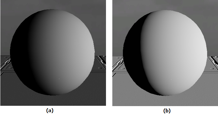 (b) Gamma encoding of the output only, the lighting looks correct but the