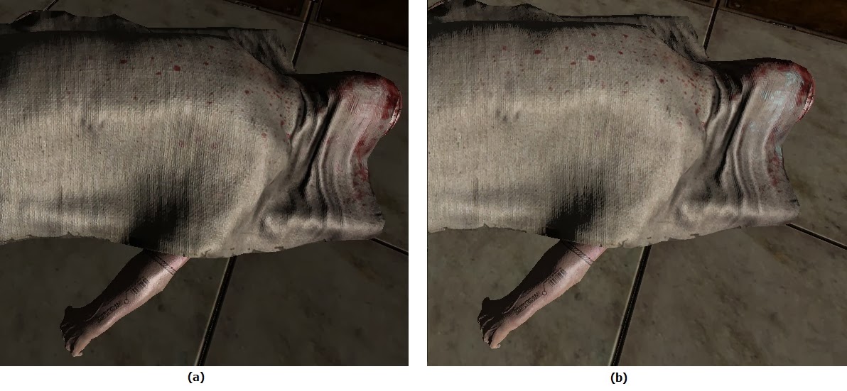 (c) Gamma decoding only, the texture is much darker and the lighting is incorrect.